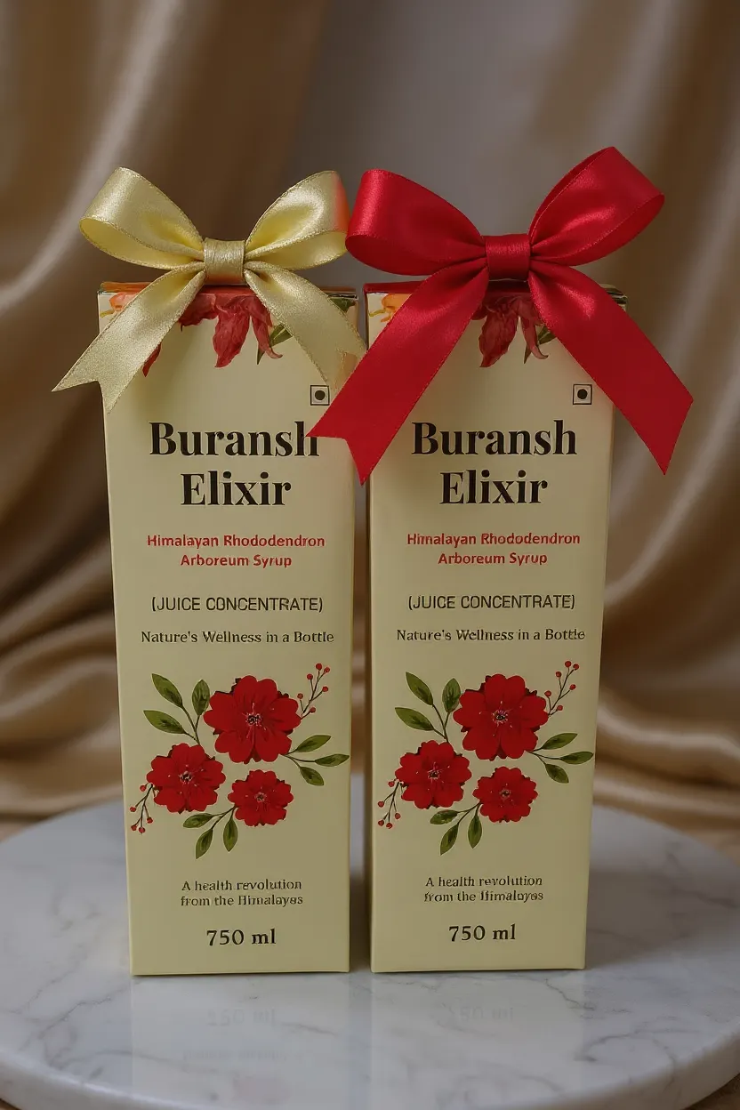 Crafted from wild Himalayan Rhododendron for immunity, vitality, and energy. Discover the ancient wisdom of Buransh Elixir, a premium wellness drink rooted in centuries of healing tradition.
